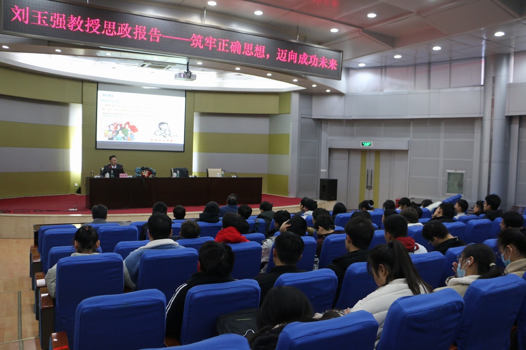 聘任仪式后,刘玉强作了题为《筑牢正确思想,迈向成功未来》的专题报告。他结合全国教育大会、全国高校思想政治工作会议精神,根据自身求学经历与职业感悟,从时代要求、如何学习、思想准备、工作态度及关系处理五个方面展开报告;并向同学们提出殷切希望:学会感恩报恩、厚植爱国主义情怀,踏实学习、报效祖国。报告内容丰富,语言朴实深刻,满满的正能量。不仅与同学们分享了其学习、生活经验和人生态度,而且指出了追求事业、实现人生梦想的方法,开阔了学生思路,必将为青年大学生成长成才发挥积极的促进作用。