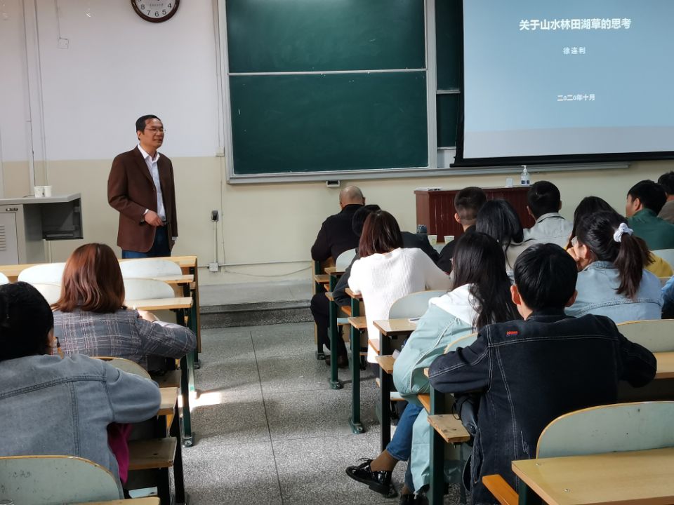 讲座中,徐连利首先阐述了山水林田湖草的含义及特征;之后从山水林田湖草生命共同体的含义、生态哲学思想、马克思自然观和中国传统智慧等方面剖析了实施山水林田湖草生态保护修复的迫切性和现实意义,并介绍了国内外生态保护修复工作动态,重点介绍了我国山水林田湖草修复工作情况,特别是河南省已经实施的工作和目前正在开展的重点工作情况;最后就如何开展生态保护修复工作以及应注意的几个关键性问题展开论述。讲座内容丰富,理论联系实际,通俗易懂,师生们受益匪浅。同时,通过生动的列举分析与问题讨论,激发了同学们对水文专业知识的学习热情,拓宽了学术视野,提升了专业素养,为今后的学习和研究注入了新的动力。