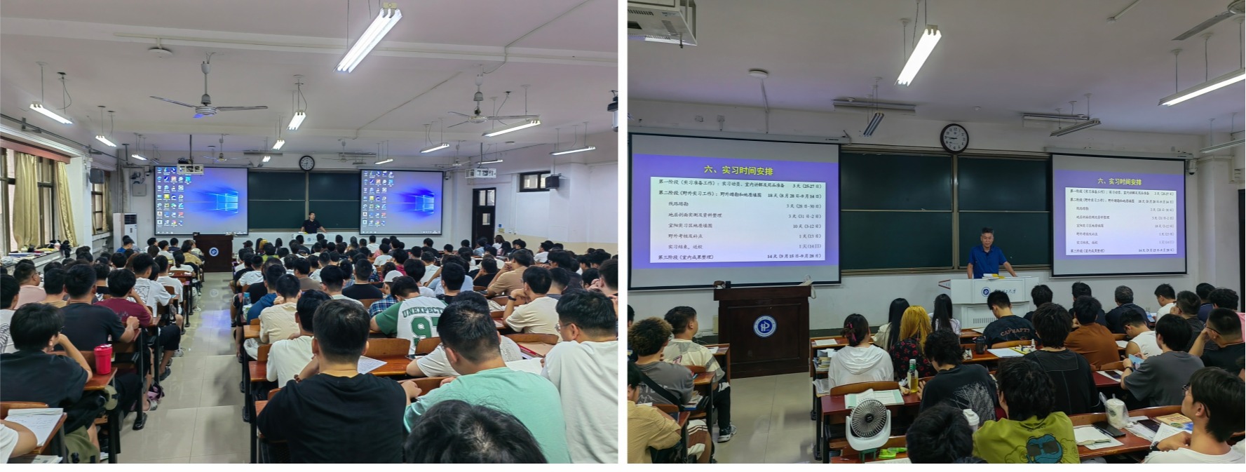8月26日学院召开了实习动员和安全教育大会。对实习目的及任务、实习内容和方法及实习安排进行了全面讲解,同时对学生进行野外工作技巧、紧急避险和自救互救措施等方面的培训与指导。