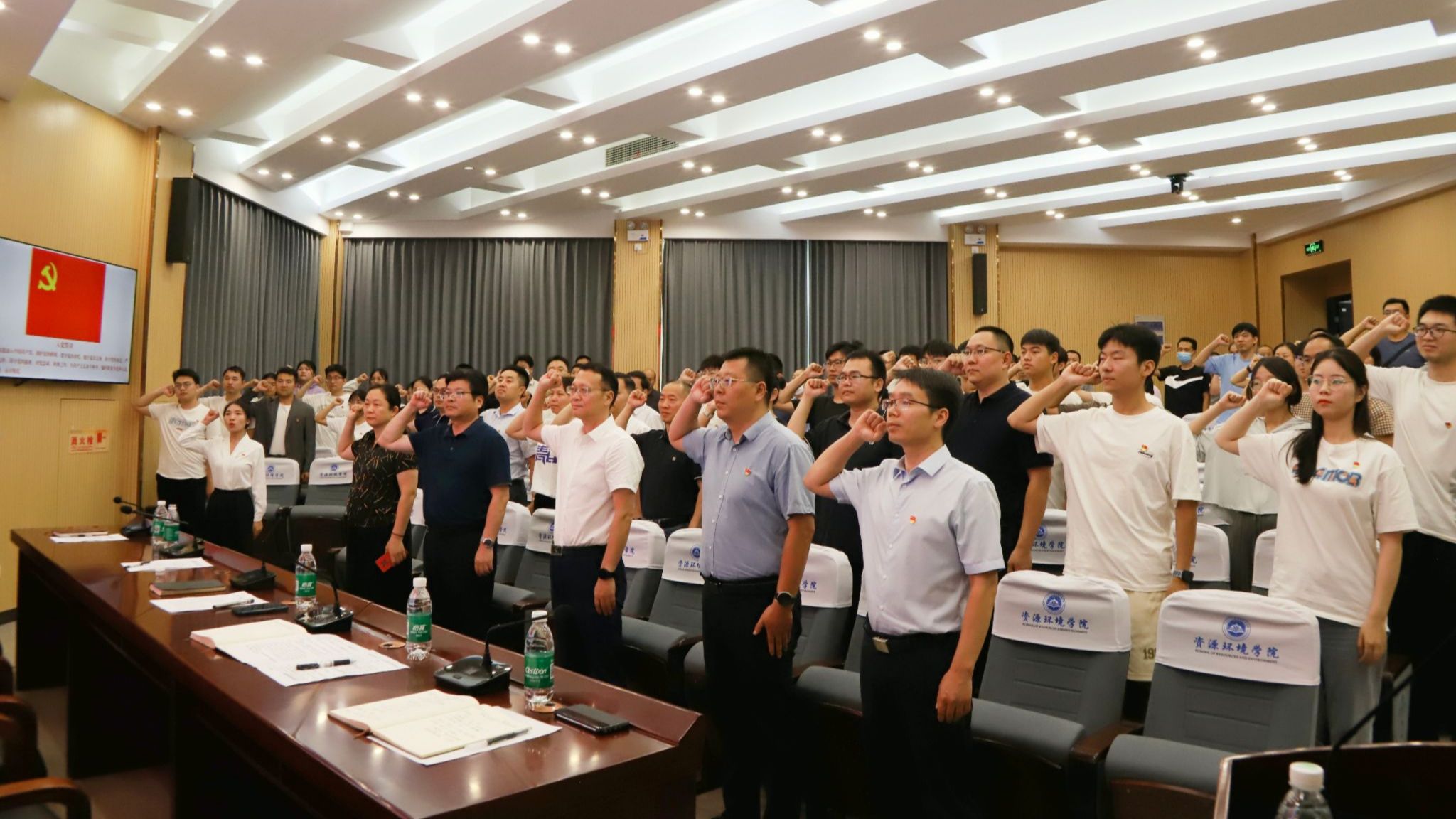 为庆祝中国共产党成立103周年,继承和发扬党的光荣传统,进一步发挥党员的示范引领作用,6月26日,我院在资环楼第一学术报告厅举行“七一”表彰大会暨新党员入党宣誓活动,学院领导班子成员、党支部书记、优秀党员代表、新发展党员和积极分子、发展对象代表参加会议。会议由党委副书记孙付伟主持。