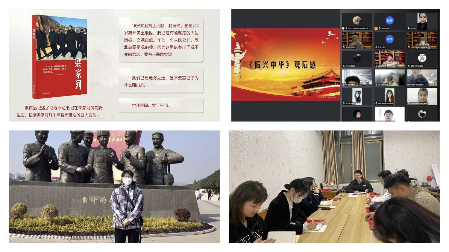 本次活动主要分为三部分,包括“薪火相传,凝心铸魂”红色影视片段鉴赏活动 、“品读经典,锤炼党性”主题读书活动 、“脚踏实地,心向未来”假期社会实践分享活动。红色影视片段鉴赏活动中,青马班学员们与大家分享自己精挑细选的红色影视等纪录片中的经典片段,学习感悟中国共产党带领人民从站起来到强起来的发展过程中的艰苦奋斗历史;在主题读书活动中,大家分享了自己阅读的红色书籍,并通过线上会议就学习笔记内容与大家进行交流,分享学习感悟;在社会实践分享活动中,同学们参观了红色教育基地,将实践中的自身经历和心得感悟通过视频记录下来与大家进行分享。