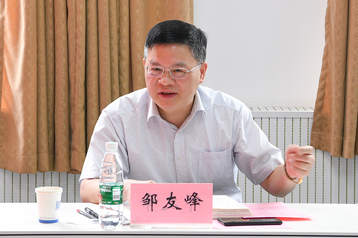6月7日下午,校党委书记邹友峰到我院就学习贯彻习近平新时代中国特色社会主义思想主题教育和一流学科创建工作进行调研。院领导班子成员,教授代表、各系(室)主任和支部书记、学科和平台相关负责人参加调研座谈会。