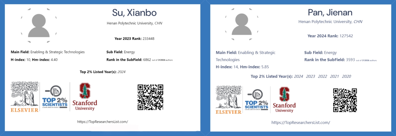 2024年9月16日,美国斯坦福大学和爱思唯尔(Elsevier)共同发布了2024年度第七版《全球前2%顶尖科学家榜单》(World's Top 2% Scientists),该榜单自全球近700万名科学家中挑选,旨在表彰全球在科学研究领域具有重要影响力的科学家。我院苏现波教授、潘结南教授入选该名单,彰显了我院在煤系气基础研究领域的国际影响力不断增强。