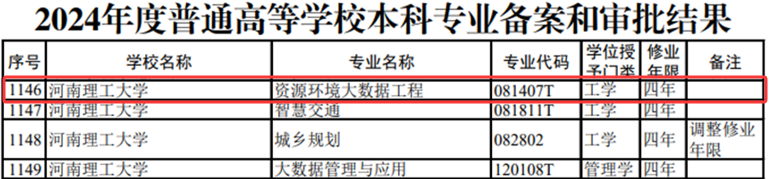 教育部近日公布了2024年度普通高等学校本科专业备案和审批结果,我院组织申报的“资源环境大数据工程”专业成功获批备案,将于2025年正式招生。该专业是利用大数据和人工智能技术,研究矿产资源和能源预测评价及其开发中相关的环境问题,并实现高效预测、精准勘查与绿色开发的地质类新工科专业,该专业自2021年开始列入普通高等学校本科专业目录,专业代码081407T,2024年被列为河南省急需特需、新兴未来本科专业支持目录清单。