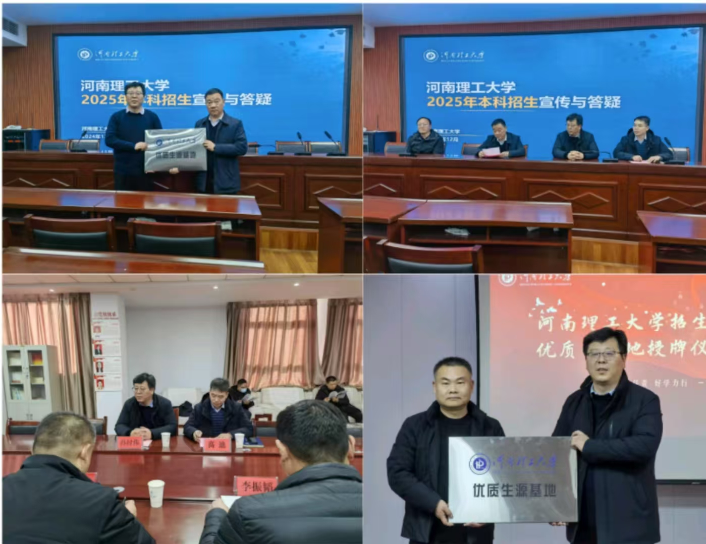 为进一步扩大学校知名度和影响力,提升本科生生源质量,1月14至15日,我院领导带队赴周口市商水县第一高级中学和商丘市柘城县第二高级中学开展招生宣传和“优质生源基地”授牌工作。