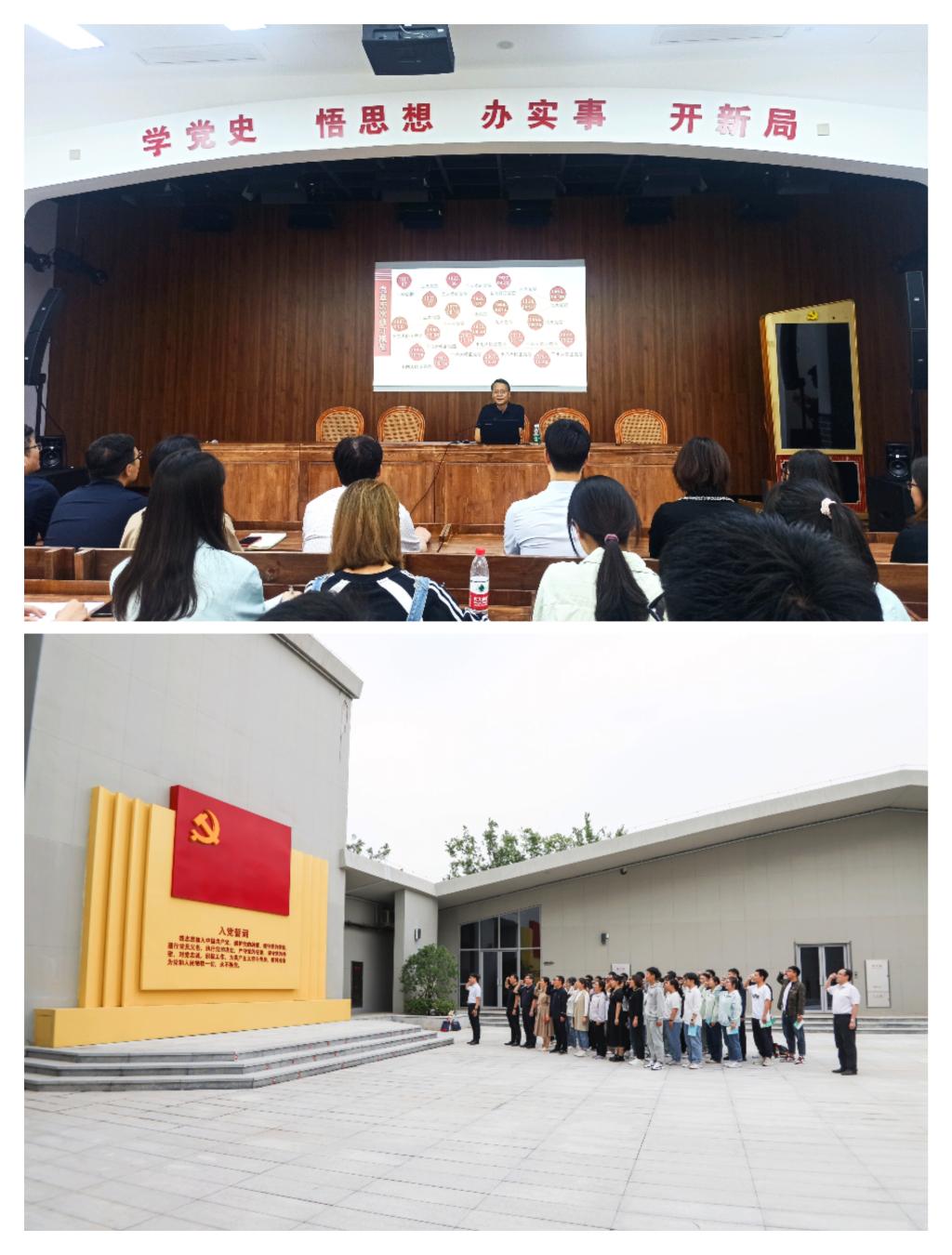 为深入开展学习贯彻习近平新时代中国特色社会主义思想主题教育,5月23日下午,党委书记桑俊勇在焦作市党群服务中心党员组织生活馆为学院师生代表讲授专题党课《学党章 悟思想 夯实理想信念之基》,机关党支部全体党员和部分学生党员代表参加学习。