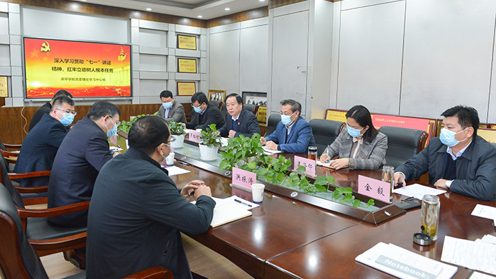 会上,学院党委书记罗绍河以《深入学习贯彻“七一”重要讲话精神,扛牢立德树人根本任务》为题进行领读学习,并汇报了学院党委理论学习中心组理论学习情况。学院中心组成员围绕学习贯彻习近平总书记“七一”重要讲话精神等,结合各自分管工作,及学院“十四五”规划编制、谋划改革发展等逐一发言,谈体会、谋发展,开展了研讨交流。