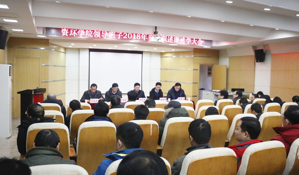 2019年1月3日下午,资环学院召开2018年度领导班子述职述廉述学暨院长抓发展述职大会。校党委书记邹友峰出席会议,党委组织部副处级组织员秦建辉,人事处人事科科长韩学锋,学院领导张贵江、齐永安、许传阳、王海邻、郑德顺、金毅及全体教职工参加会议。会议由张贵江主持。