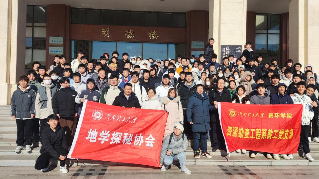 为始终坚持突出政治引领,引导青年大学生坚定理想信念,增强文化自信,资环学院资源勘查系党支部精心组织、认真筹备,于12月21日联合我校大学生地球探秘学会开展“校园半日游”科普研学游活动。本次活动邀请了河南省教学名师、河南省首席科普专家郑德顺教授,以及元培名师、土木学院秦本东教授和建艺学院闫海燕教授分别担任讲解员。此外,该院资源勘查系党支部书记、河南首席科普专家孙凤余,系主任、中国煤炭协会科普专家李云波也参加了本次活动。我校大学生地球探秘学会成员和部分大学生共计150余人参加活动。