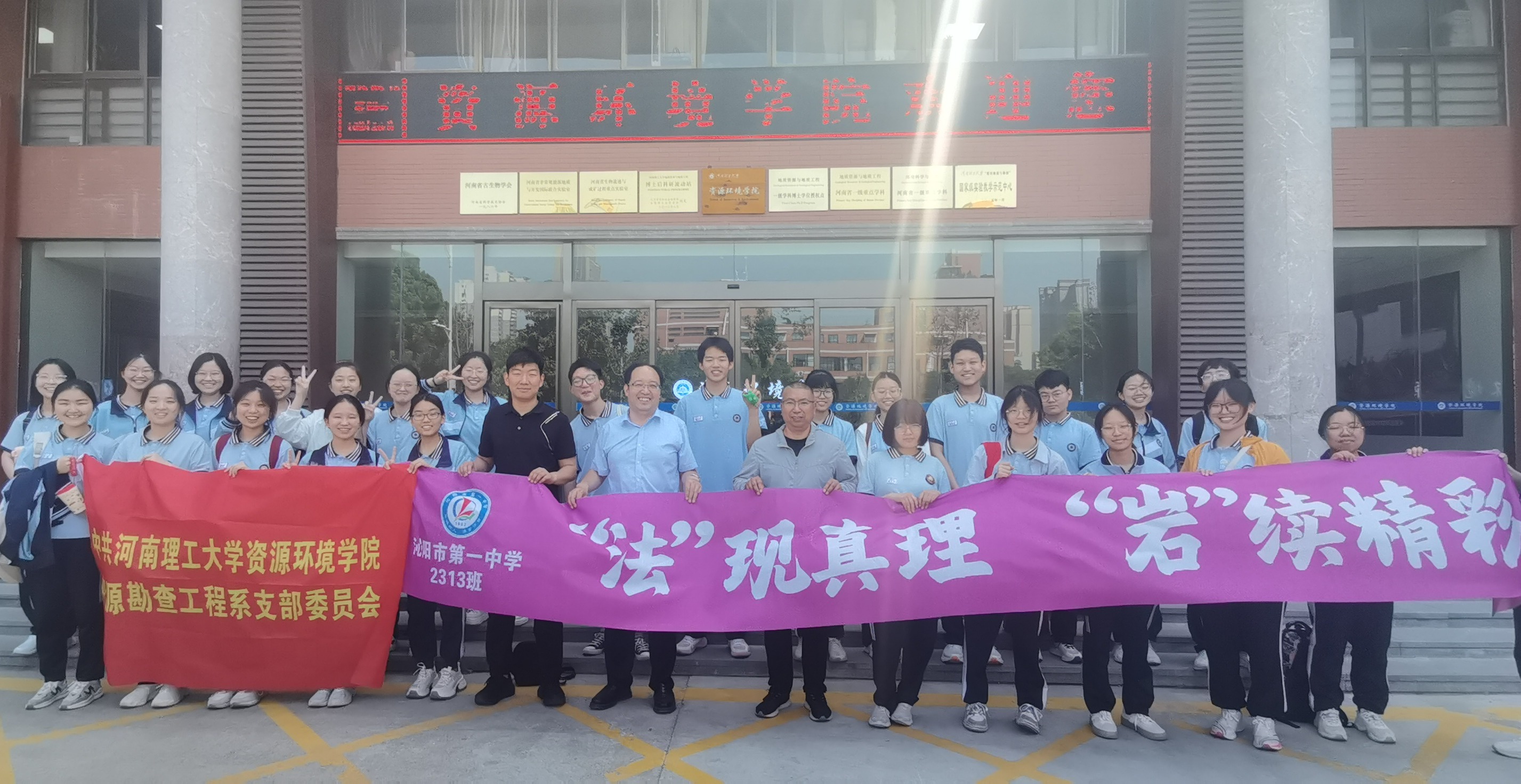 5月16日上午,该党支部与沁阳市第一中学教学第一党支部联合开展“‘法’现真理 ‘岩’续精彩”主题党日活动。活动伊始,双方党员围绕“党建引领学科发展”主题展开深入交流,探讨如何发挥党员先锋模范作用,推动教学与科研创新。随后,党员们带领同学们走进河南理工大学地球科学馆,通过观察化石标本、矿物样品等展品,共同探索地球亿万年演化的奥秘。在互动环节中,同学们积极参与地质知识问答,现场气氛热烈。7月4日至5日,该党支部携手测绘学院地理信息科学系党支部集体备课,交流如何夯实教学基本功,提升教学能力;双方党员带领同学们深入云台山国家级野外教学实践基地,进行地质剖面测量、岩石采样与鉴定,并利用无人机航拍等现代测绘技术进行三维建模。通过现场教学、实地观察等实践环节,强化了同学们专业实践能力。