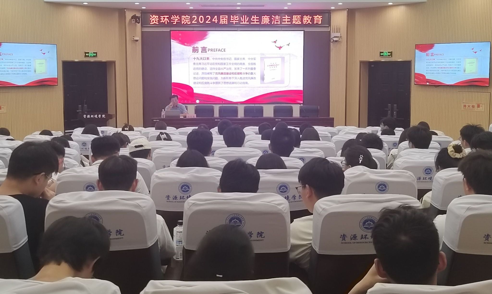 为引导毕业生党员树立遵纪、守法、崇廉的人生观,增强廉洁自律意识,6月18日下午,在资环楼第Ⅰ学术报告厅,我院党委副书记孙付伟以“加强党风廉政建设,扣好人生第一颗纽扣”为题,面向毕业生党员讲授了廉洁教育专题党课。2024届全体毕业生党员100余人聆听了本次党课。