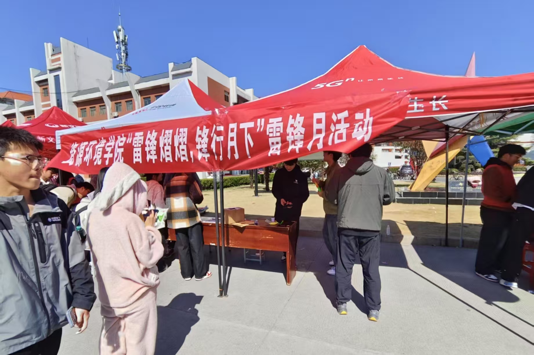 为弘扬新时代雷锋精神,培育青年学子社会责任意识,3月16日,我院学生会在学苑餐厅前广场开展“雷锋熠熠 锋行月下”主题教育活动。