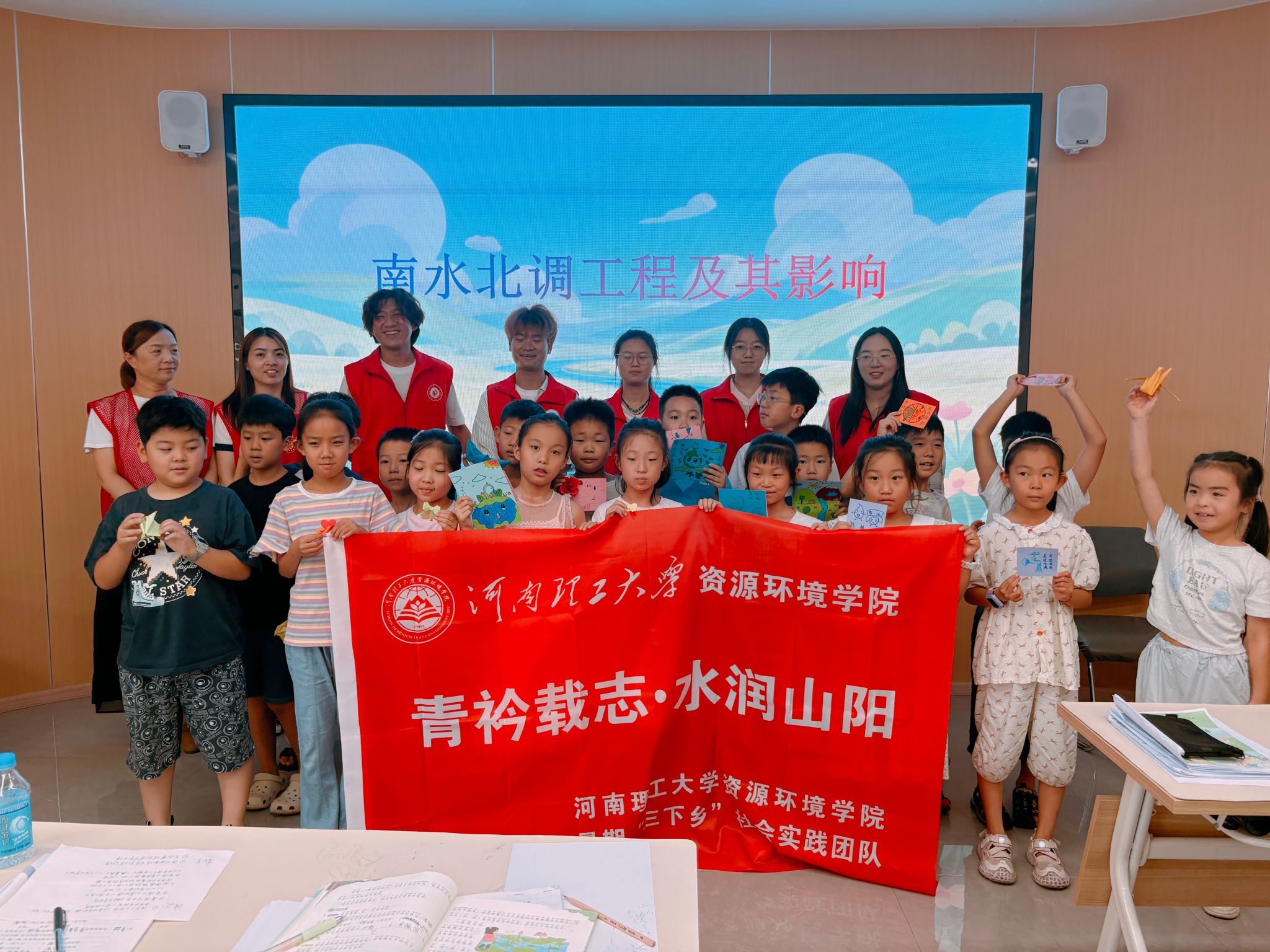 为深入贯彻《国家水网建设规划纲要》精神,助力全民水资源安全意识提升,7月12日,资源与环境学院“青衿载志·水润山阳”实践团在文苑街道党员活动中心成功举办“南水北调浸童心”主题宣讲活动,为社区儿童带来一堂生动有趣的国家水网科普课。