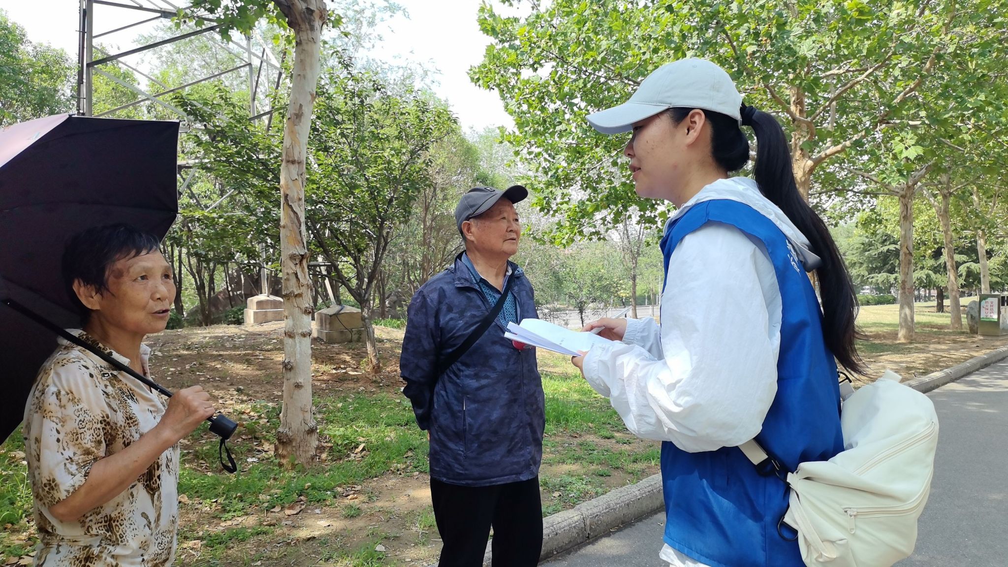 活动前期,团队紧扣生态修复主题,反复打磨方案,精心设计针对性强的调查问卷,为实地调研打下坚实基础。随后团队成员分工协作,深入探访。实践现场,团队兵分两路高效行动:调研访谈组深入缝山针公园,以专业态度和饱满热情,与游客展开面对面深度交流,倾听公众对生态修复的感知与评价;景观记录组则运用影像对比方法,系统拍摄公园现状,并搜集历史资料,直观呈现修复前后的沧桑巨变,为后续分析提供珍贵材料。