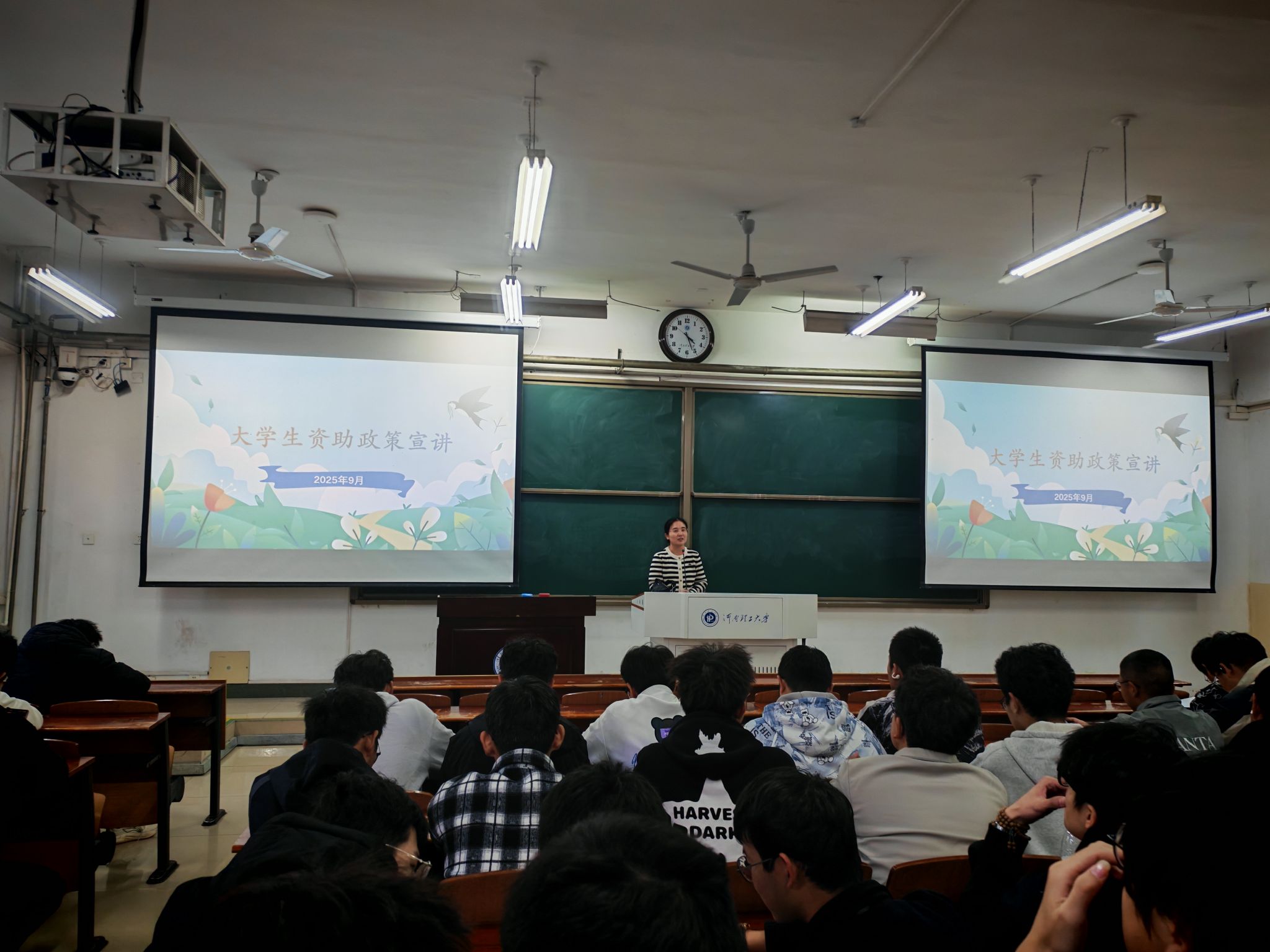 为贯彻落实国家资助政策,充分发挥资助育人实效,增进学生对相关政策的理解和运用,9月29日晚,我院在三号教学楼3101教室组织召开2025级新生资助政策宣讲会。会议由25级辅导员薛梅主持,各班班委及申报贫困资助的学生参加此次会议。