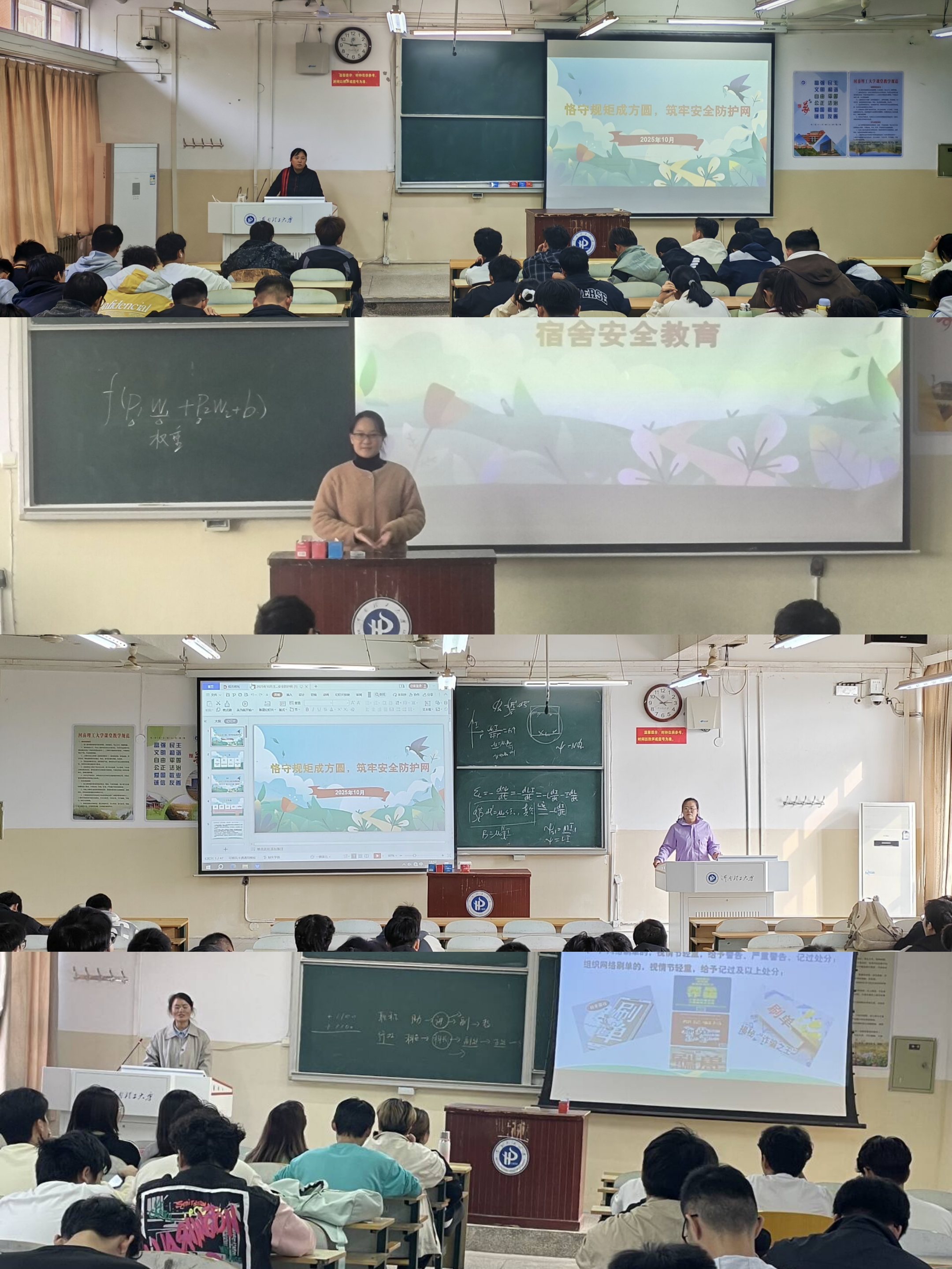 为切实增强学生的规矩意识与安全防范能力,营造安全、稳定、和谐的校园环境,10月10-27日,召开了以“恪守规矩成方圆,筑牢安全防护网”为主题的安全教育班会。本次班会由各年级辅导员主持,全体学生参加了会议。