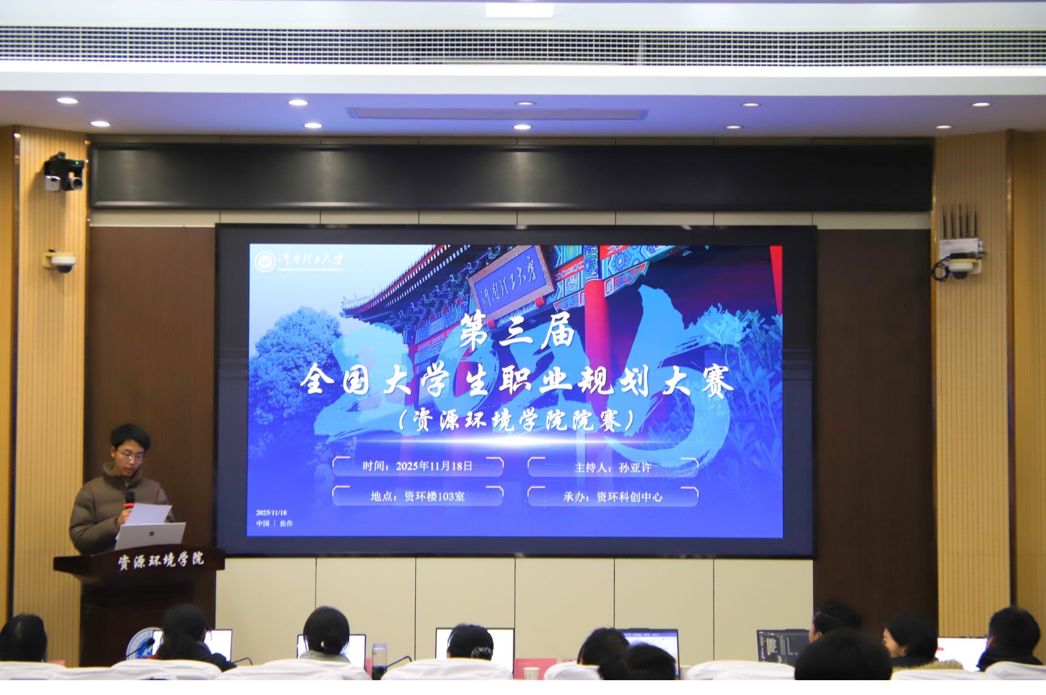 绘职业蓝图,展青春抱负。为引导学生树立正确的成才观、就业观,科学规划学业与职业发展,11月18日下午,我院在资环楼第Ⅰ学术报告厅举办第三届大学生职业规划大赛院赛。院学工办主任张娜,研究生辅导员杨英、2023级辅导员李梦杰、2024级辅导员杨澳伟、2025级辅导员王静、薛梅及学生代表高志鑫担任本次大赛评委。