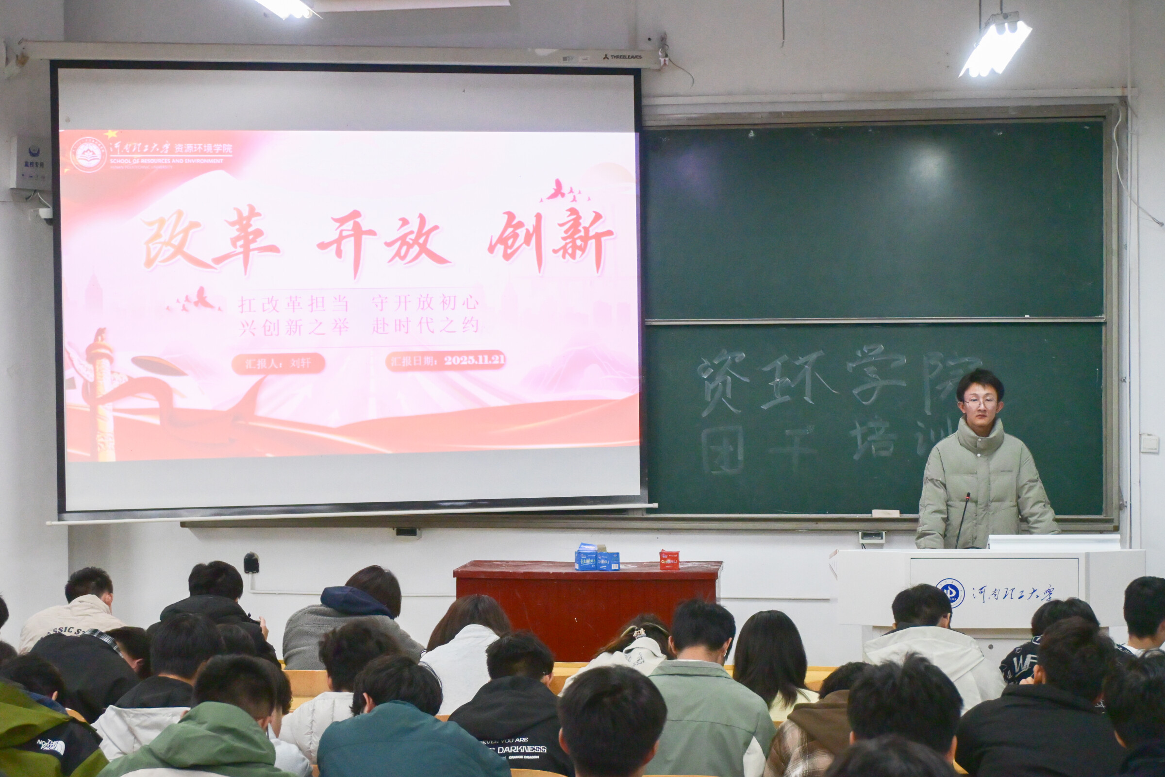 为引导学生深刻领悟改革开放的历史逻辑与时代价值,弘扬创新精神,提升实践素养,11月21日晚,我院科创中心联合院学生会于资环楼104教室举办“改革 开放 创新:扛改革担当,守开放初心,兴创新之举,赴时代之约”主题培训。本次培训由优秀学生代表刘轩主讲。