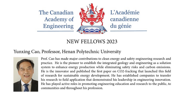 曹运兴教授当选加拿大工程院院士,是我校在创建“双一流”关键时期的又一重要成果,是我校瓦斯地质专业取得的重要突破,进一步夯实了我校在瓦斯地质和煤层气开发技术领域的全球引领地位。学校将以此为契机,继续深化高层次人才引育工作,持续加强瓦斯地质及地球科学学科建设力度,力争在学校“双一流”创建进程中再创新辉煌。