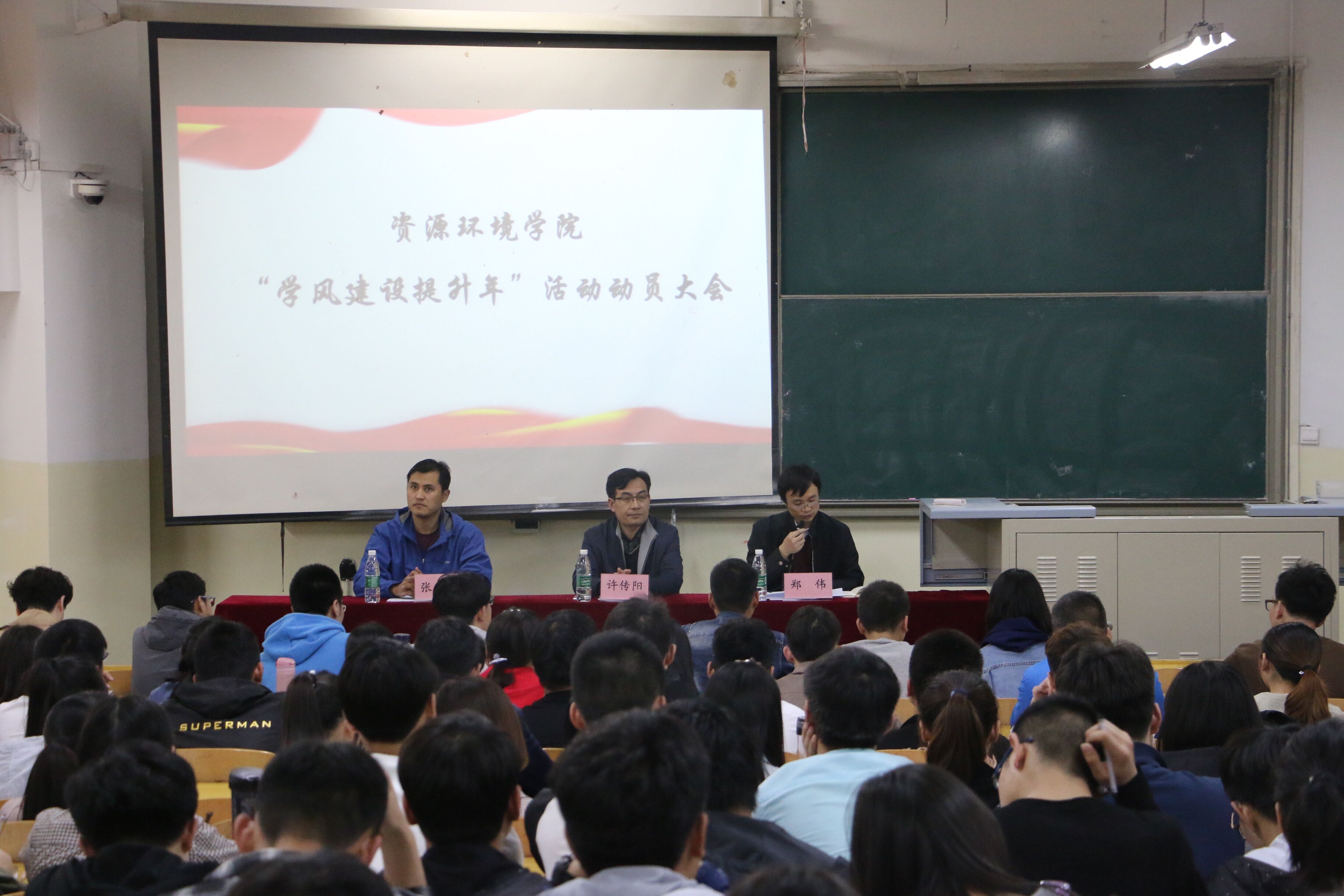3月27日下午,资环学院在院104室召开“学风建设提升年”活动动员大会。院党委副书记许传阳出席大会,院学工办主任郑伟、团委书记张良、学院辅导员、班主任、各班级学生代表参加会议。