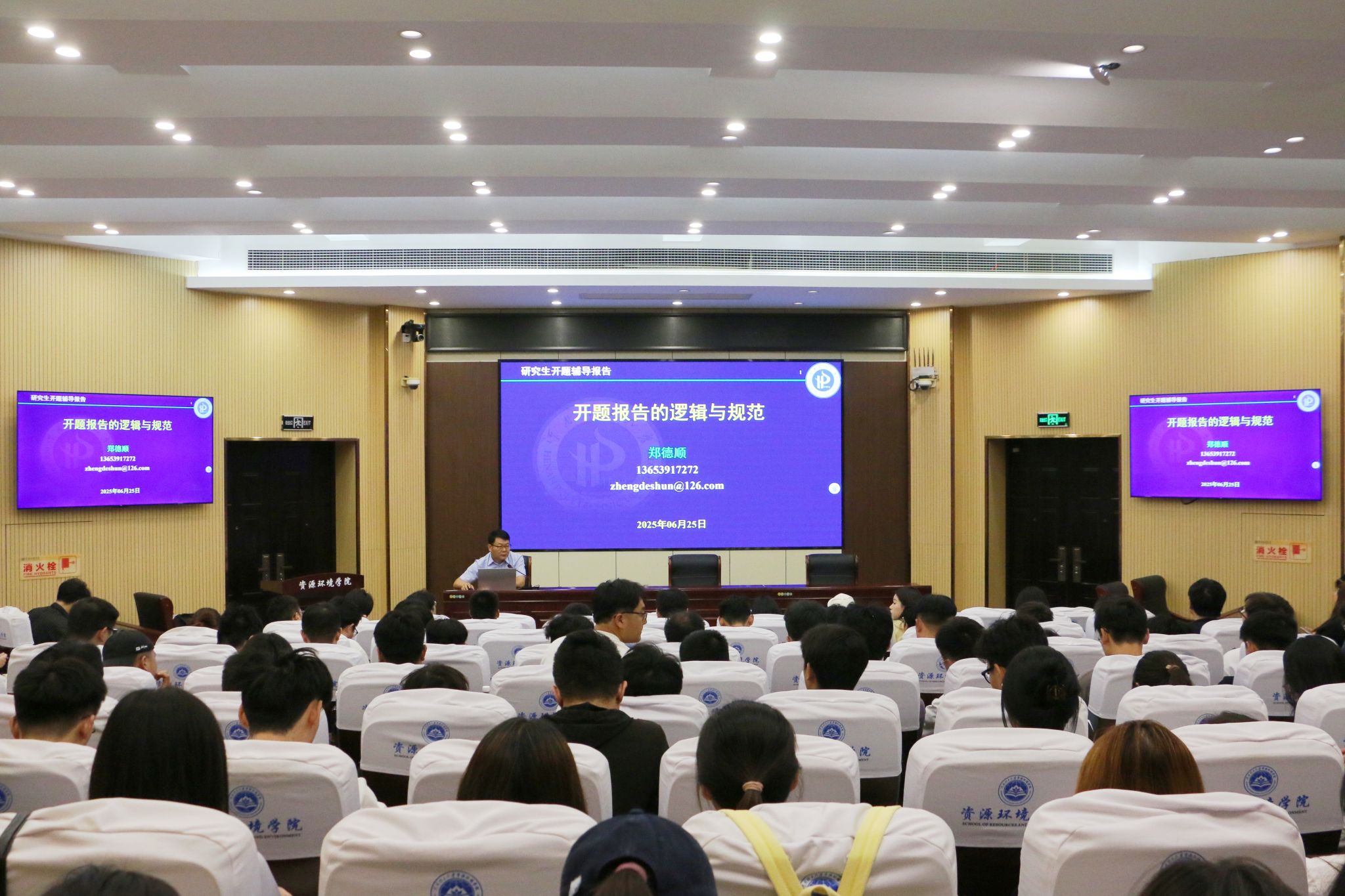 为强化研究生开题环节的科学性和规范性,提升对开题报告撰写的认识和能力,推动学术研究的顺利开展,6月25日下午,我院副院长郑德顺在103报告厅作题为“开题报告的逻辑与规范”专题培训,2024级全体研究生参加。