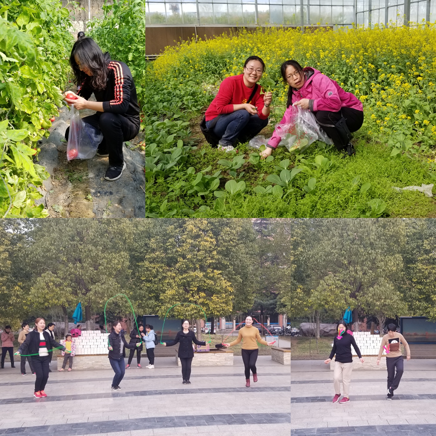 迎着春天的脚步,3月31日,女教工们来到焦作金久福果蔬种植专业合作社零距离感受了田园风光。基地负责人带领大家参观了果蔬种植基地,并向大家介绍了塑料大棚蔬菜种植、产销、电动喷灌装置、不同果蔬的生长习性和注意事项等,通过负责人的介绍,大家对耳熟能详的果蔬有了全新的理解和认识,学习了种植果蔬的方法和技能,了解到现代化的种植技术,深切感受到科技改变生活。大棚里茄子、黄瓜、西红柿红绿交映,香气扑鼻,大家一边采摘,一边品尝,欢声与笑语不断,快乐与热情四溢,亲身体会了菜农劳作的艰辛和丰收的喜悦。