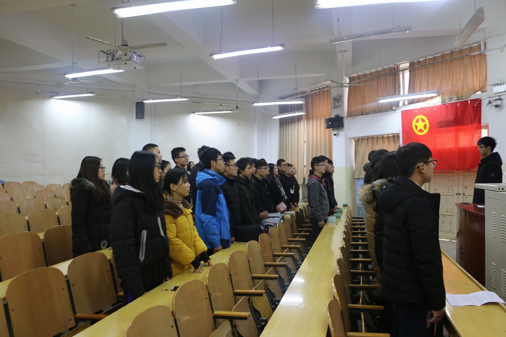 12月25日,我院在资环楼103室隆重举行资环学院2018年度新团员入团宣誓仪式。院团委委员和入团积极分子共40余人参加本次入团宣誓仪式。宣誓仪式由团委委员赵云龙主持。
