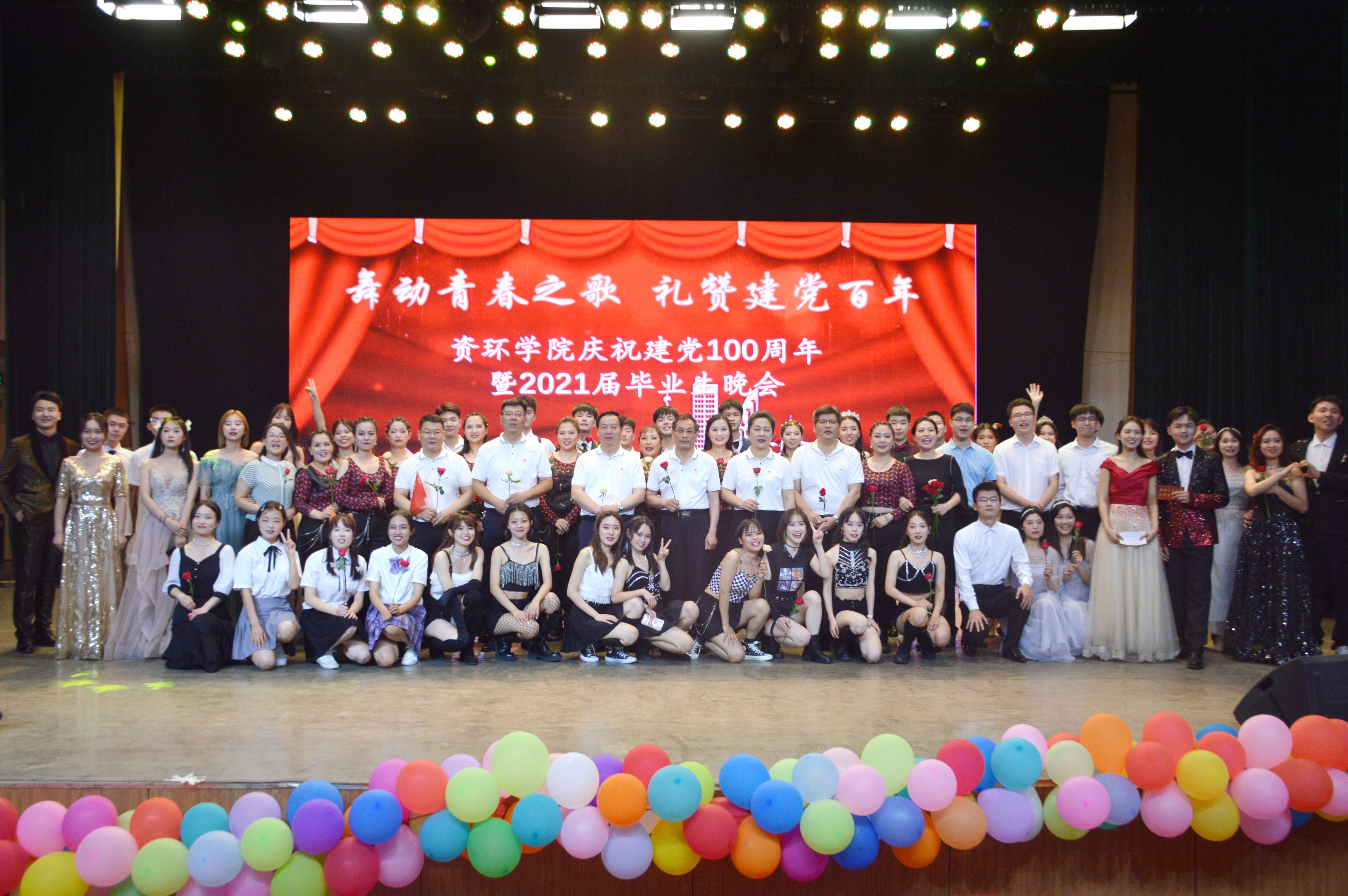 6月21日晚,资环学院“舞动青春之歌,礼赞建党百年”庆祝建党100周年暨2021届毕业生晚会在南校区小礼堂举行。该院全体院领导与师生欢聚一堂,并参加了晚会演出。