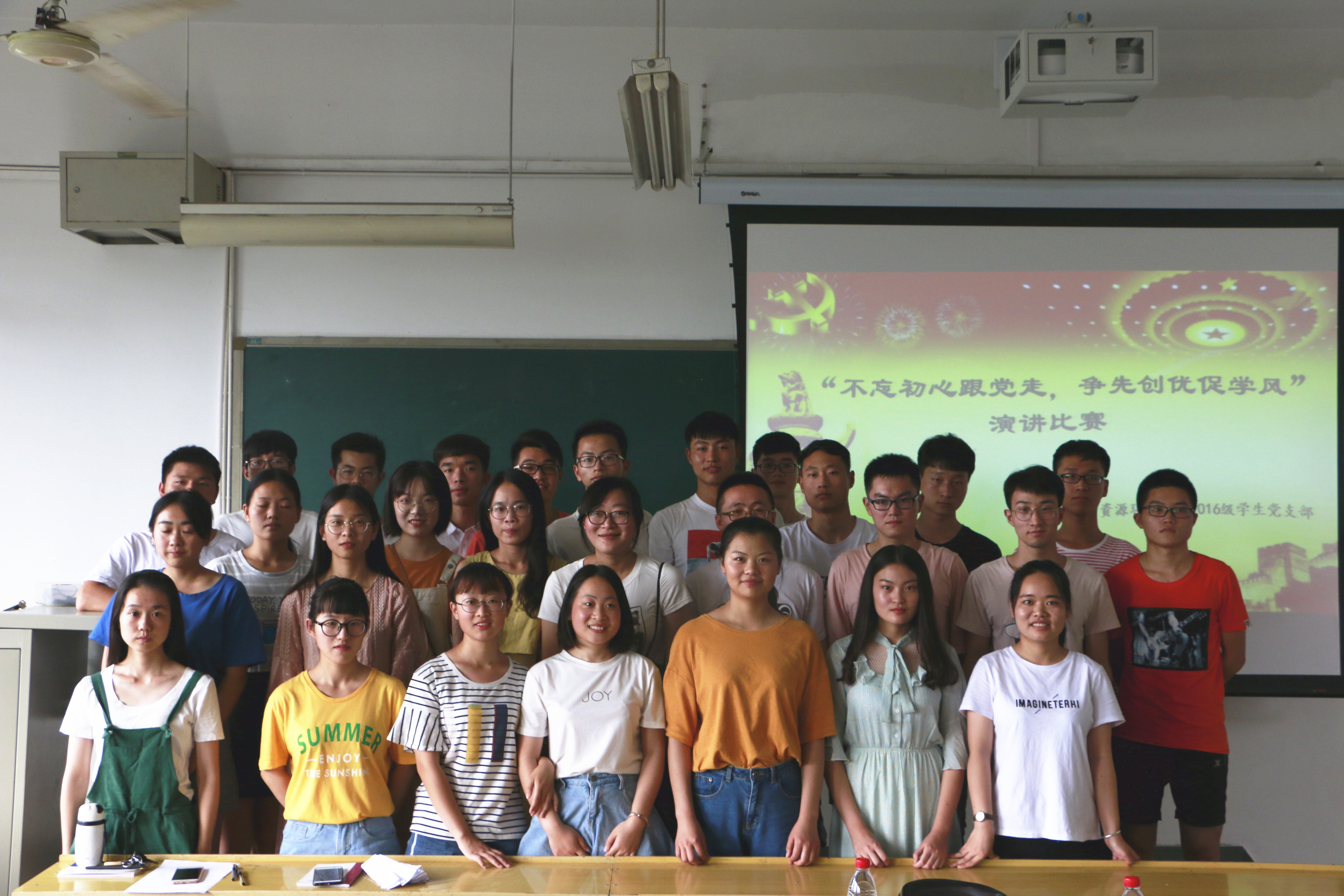 为进一步激发学生党支部活力,引导学生党员增强“四个意识”,坚定“四个自信”,做到“四个合格”,6月19日下午,我院16级学生党支部在资环楼402室举办了特色党日活动——“不忘初心跟党走,争先创优促学风”主题演讲比赛。16级学生党支部全体成员参与了本次活动。