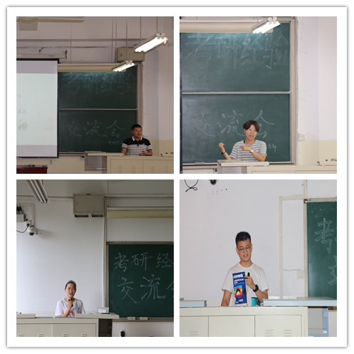 在随后的经验交流环节,2018届考研学生代表分享了他们的考研经历,结合他们自身经验向同学们介绍了考研复习方法和考试技巧,强调了考研复习中身体和心理健康的重要性,使同学们受益匪浅。低年级同学们根据自己考研中遇到的问题与老师和毕业生进行了交流沟通。