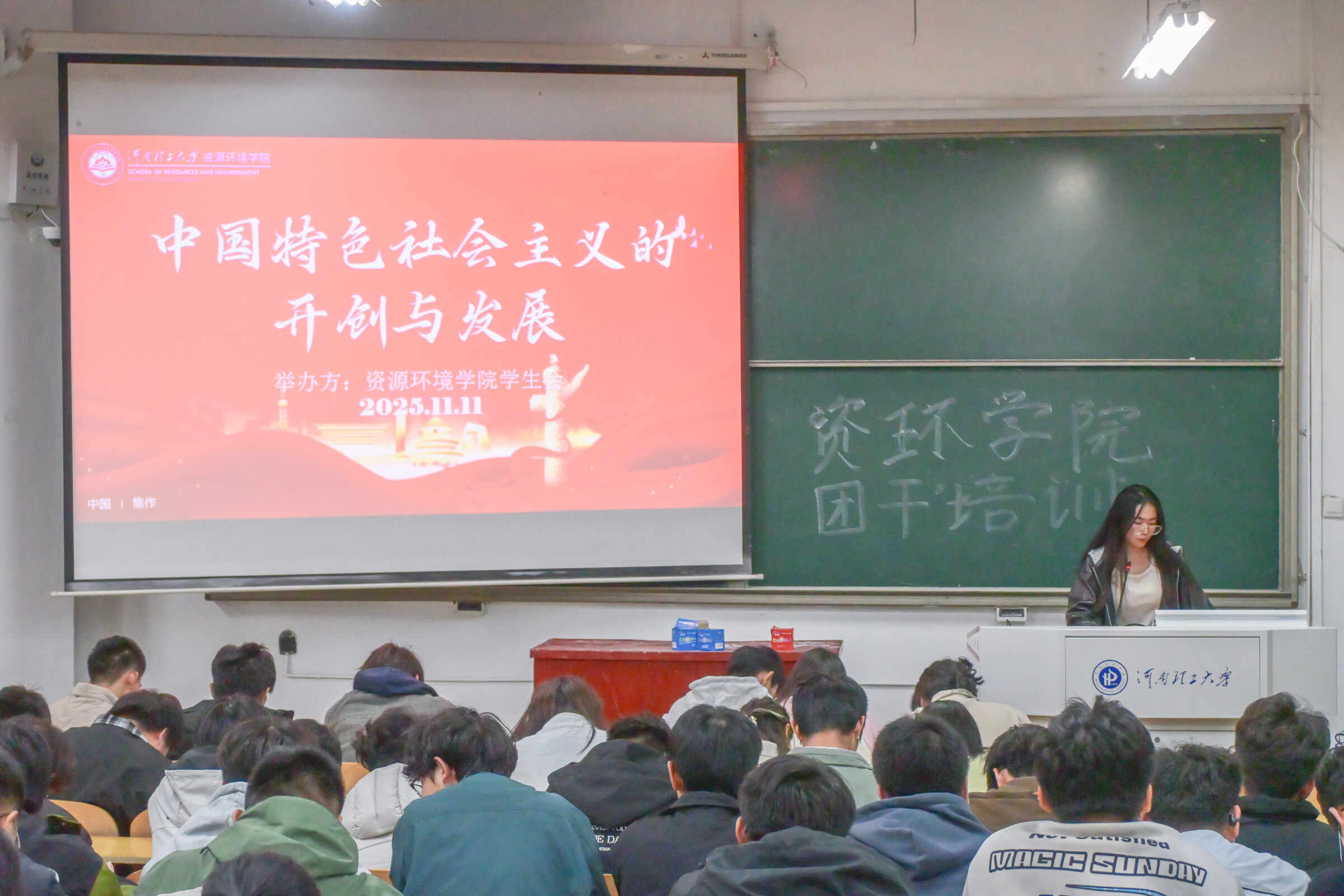 为深入学习贯彻中国特色社会主义思想,持续深化团学骨干理论素养,提升青年引领能力与实践水平,11月11日,我院学生会联合院科创中心在104教室举办“中国特色社会主义的开创与发展——新时代青年的信仰之基与行动之路”专题培训。本次培训邀请张静文主讲。