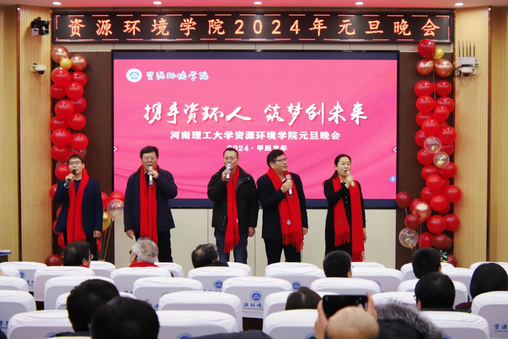 12月29日晚,我院在第一学术报告厅举办“携手资环人,筑梦向未来”主题元旦晚会。百余名教职工戴上红围巾欢聚一堂,载歌载舞,共同迎接新年的到来。