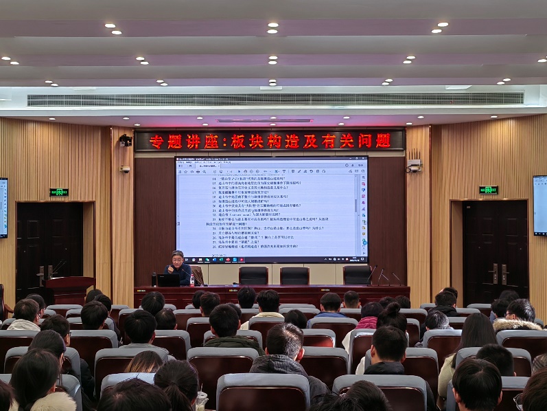 侯泉林教授通过《板块构造及有关问题》《面理和劈理及有关问题》《几个构造地质学问题的思考》等3个专题讲座,系统讲述了板块构造理论基本原理及前沿科学问题,探讨了中小尺度构造研究中的常见问题,如伸展褶劈理的成因、运动学涡度、应变分配等,最后以岩石变形准则为例介绍了如何从经典理论中发现科学问题。并于19日对学院教师的自然科学基金申请书进行了详细辅导与交流,从科研选题、基金撰写等方面提出了针对性的意见和建议。本次系列讲座和基金交流会为老师们的教学和科学研究提供了新的思路和启发,同时开阔了同学们的专业视野,激发了同学们的学习热情,为推动学院教学科研事业发展起到了积极的促进作用。