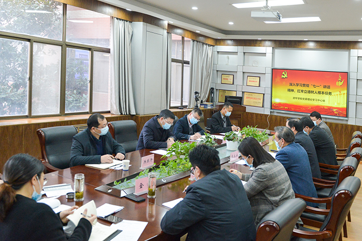 会上,学院党委书记罗绍河以《深入学习贯彻“七一”重要讲话精神,扛牢立德树人根本任务》为题进行领读学习,并汇报了学院党委理论学习中心组理论学习情况。学院中心组成员围绕学习贯彻习近平总书记“七一”重要讲话精神等,结合各自分管工作,及学院“十四五”规划编制、谋划改革发展等逐一发言,谈体会、谋发展,开展了研讨交流。
