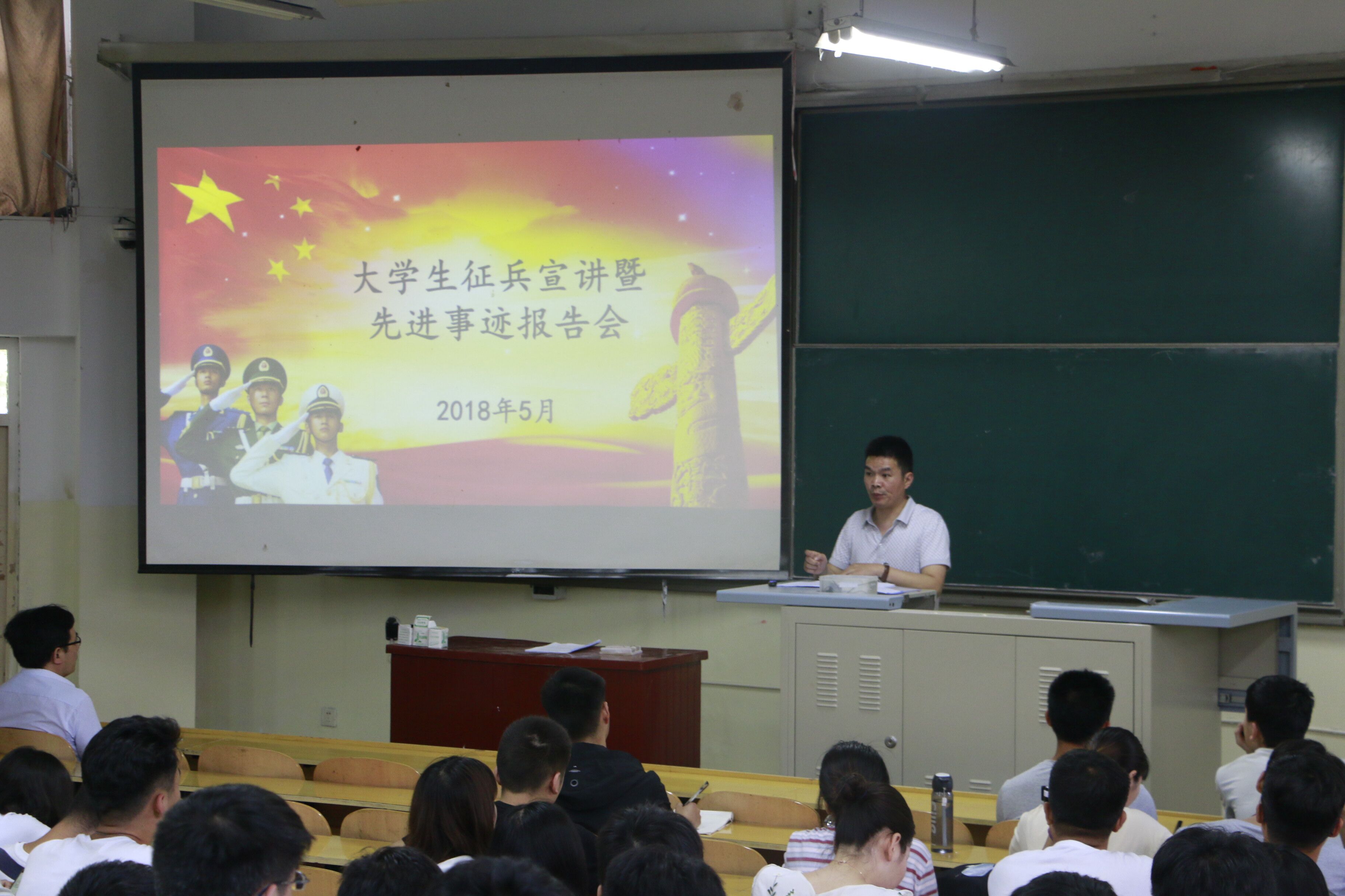 5月25日下午,我院在学院楼104室举行了大学生征兵宣讲报告会暨先进事迹报告会。本次会议邀请了后备军官学院党政办公室主任、校武装部党政办公室主任李好永担任主讲,资环学院党委副书记许传阳出席了会议。我院辅导员及200余名在校生、入伍积极分子参加了宣讲会。