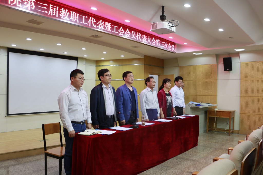 5月22日下午,我院第三届教职工代表暨工会会员代表大会第三次会议在影像厅召开。院党委书记张贵江,院长齐永安,党委副书记、学院分工会主席许传阳,副院长王海邻,副院长郑德顺,副院长金毅及代表参加会议。会议由许传阳主持。