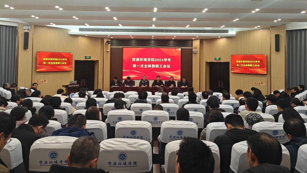 人勤春早功不负,奋斗实干启新程。3月5日下午,资环学院2024年度工作会议在资环楼第一学术报告厅召开。学院领导班子成员和全体教职工参加会议。会议由院党委副书记孙付伟主持。