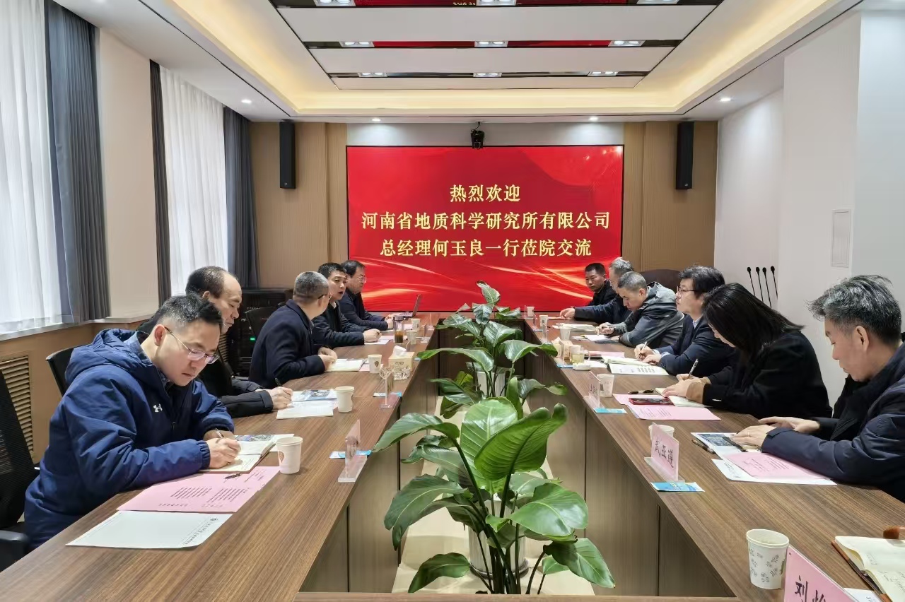 金毅首先对河南省地质科学研究所有限公司一行的到访表示热烈欢迎。何玉良介绍了河南省地质科学研究所有限公司的发展历程、主要业务范围等,希望双方在矿产资源勘探与开发、生态环境修复与治理、研究生培养基地建设、重大科研项目申报及学生就业等方面开展深入合作。