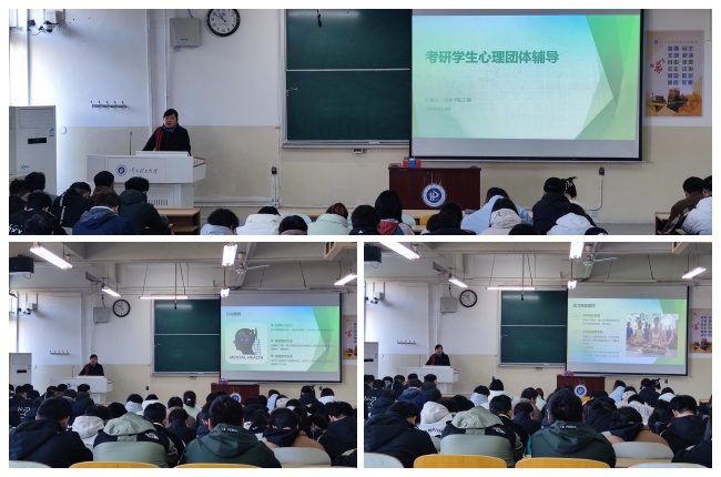 为帮助考研学子缓解备考压力,调整心态,以最佳状态迎接即将到来的考试。我院于11月20日在二教楼2302教室由心理咨询师王静老师为考研学生开展了一次考研前心理辅导活动。
