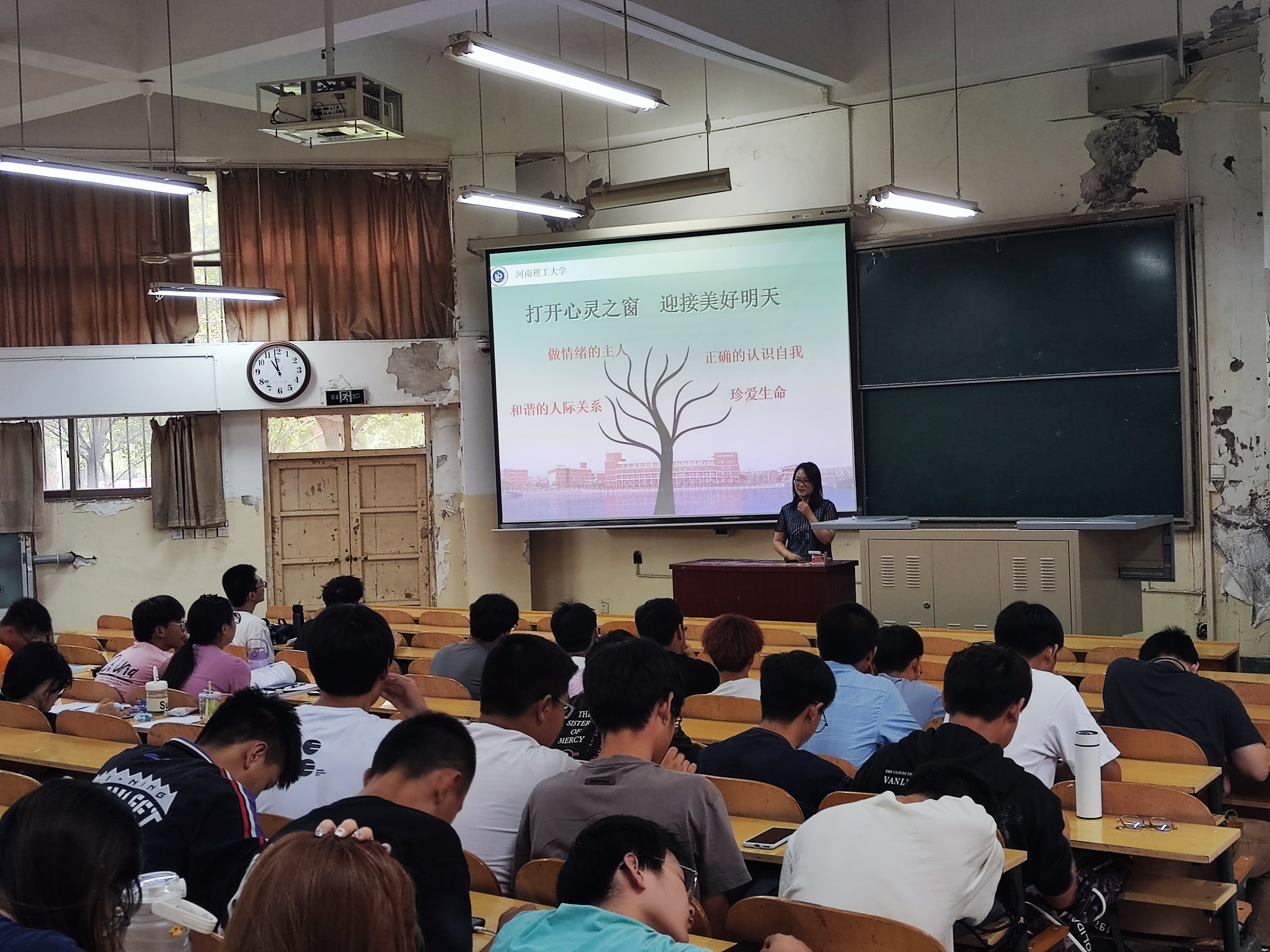 各年级辅导员首先阐述了大学生心理健康的重要性,并对心理健康标准向大家进行了介绍和说明。鼓励同学们要正确面对,积极学习心理健康的相关知识,学会运用科学有效的心 理测评方法,定期开展自我检测,及时发现并解决问题。在此基础上,老师们进一步讲解 了如何识别与应对生活中可能出现的心理危机状况,并就多个常见心理问题,比如人际关系紧张、情感困扰、学业负担过重等展开了深入的剖析,并对此类问题提供了针对性的应对策略和解决方法。最后,老师们还向同学们详细介绍了心理咨询的重要性,指出心理咨询不仅可以有效帮助同学们解决心理问题,还可以提升个人的自我认知和自我调节能力,并提醒大家学校设有专业的心理咨询服务机构,为有需要的同学提供免费的个性化心理咨询服务,鼓励大家在遇到心理问题时,要积极应对,勇于寻求帮助。